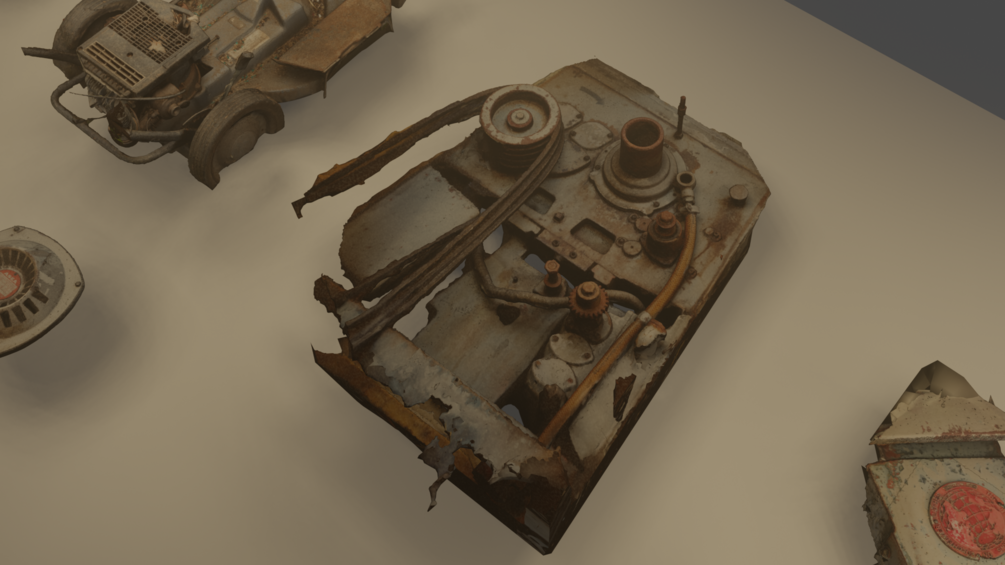 Heres some machinery scans in a .blend file.. 150 - 300k faces each. really good to pick apart and use for detailed machinery